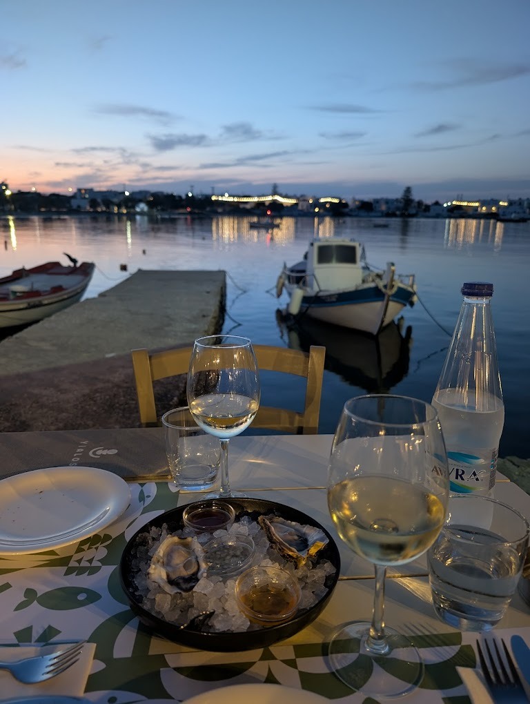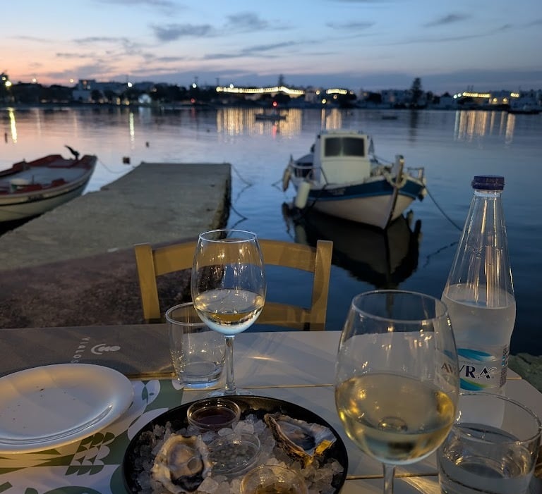 Beachfront taverna known for fresh-caught seafood, grilled whole fish, olive oil + lemon Charred edges. The waiter barely spoke, but smiled like we were family. I watched the boats rock as I ate, and I swear I didn’t check my phone once.